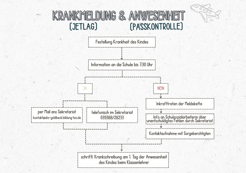 Im Bereich „Krankmeldungen & Anwesenheiten“ finden Sie als Eltern alle wichtigen Informationen zur richtigen Vorgehensweise bei Krankheit oder Abwesenheit Ihres Kindes. Wie bei einer Flugreise ist es wichtig, uns rechtzeitig über Änderungen an Bord zu informieren. Hier erfahren Sie Schritt für Schritt, wie Sie Ihr Kind abmelden und welche Meldekette in Kraft tritt, sollte Ihr Kind unabgemeldet fehlen. So sorgen wir gemeinsam für einen reibungslosen Ablauf und die Sicherheit aller Passagiere an unserer Schule.