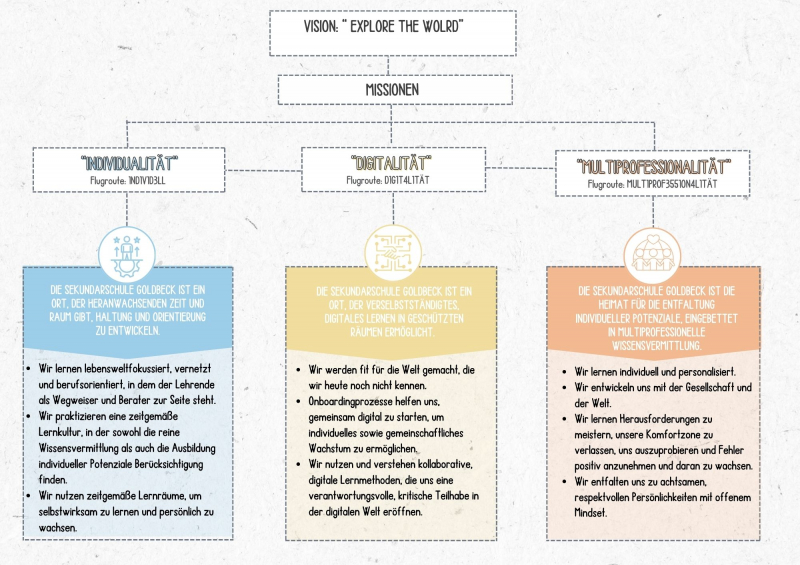Unsere pädagogische Arbeit basiert auf drei zentralen Grundpfeilern – unseren „Flugrouten“ –, die das Schulleben strukturieren und im Alltag aktiv gelebt werden: