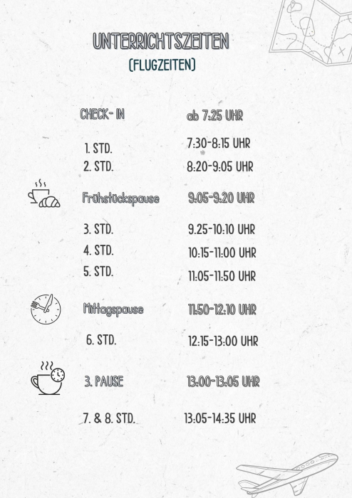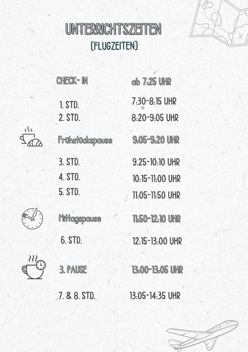 FLUGZEITEN - Unterrichts- und Pausenzeiten